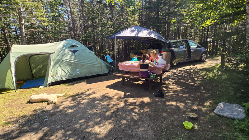 На весь отпуск у нас по счастью было три недели и в этот раз выехали на день раньше что бы проехать нацпарку Cape Breton, по известному Cabot Trail куда собирались уже много лет но каждый раз спешили на паром и проезжали мимо. Через два дня пути заночевали на кемпинге практически у границы парка и весь следующий день, насколько позволяло время до вечернего (в 23:15) парома не спеша катили по живописной дороге делая частые остановки на смотровых площадках и проходили небольшие трейлы. Погода была отличная, виды замечательные - что еще нужно для хорошего отпуска?