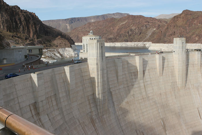 В 30 милях от Лас Вегаса — еще одно чудо, правда уже не природы а человеческого гения: Hoover Dam. Огромная плотина перегораживает путь реки Колорадо. Ее строили с 31 по 35 год, израсходовав «уже_не_помню_но_очень_много_бетона». Мы решили остановиться и совершили тур по вокруг, спустились даже в генераторный зал, расположенный у подножья дамбы.
