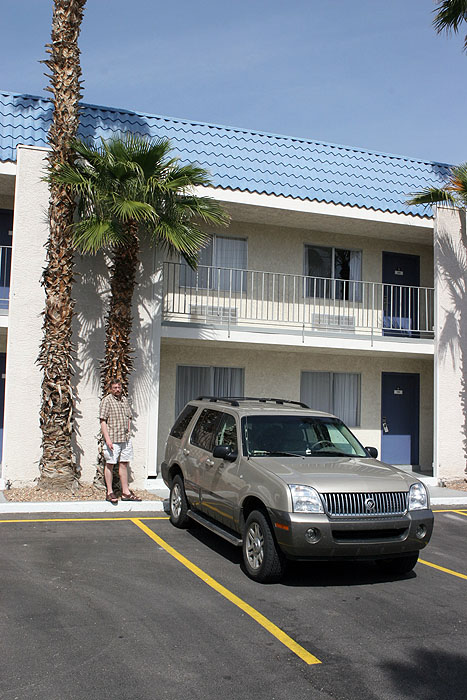 На пути в низ, приборная доска встревожено пискнула и показала что бензинчику нам осталось всего на 12 миль!!! Это после того, как всего 20 минут назад у нас было около 110 миль запаса хода… А вокруг то — Death Valley и мы в стороне от основных маршрутов… Как бы то ни было, гипнотизируя взглядом приборную доску, мы докатились назад в Stovepipe Village. Где от доброты душевной местная администрация отеля отвалила нам 5 (!) галлонов бензина с пожеланиями добраться до местной заправки, которая к слову была еще в 27 милях назад по нашему маршруту…