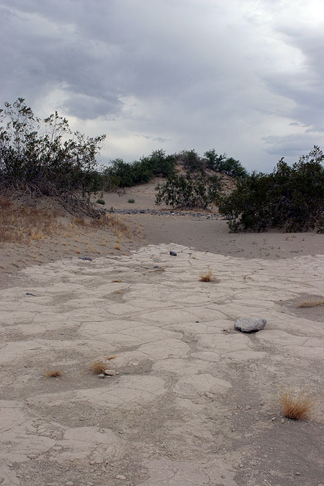 Однако пора было и подзаправится. В двух смыслах — самим и нашей машине. На карте мы нашли место которое бы удовлетворило эти оба желания и отправились туда, с таким расчетом, чтобы прогулять и по песчаным дюнам. На подходе нас приятно удивил дождик. По нашим подсчетам мы стали свидетелями выпадения годовых осадков этой долины 2005 года.