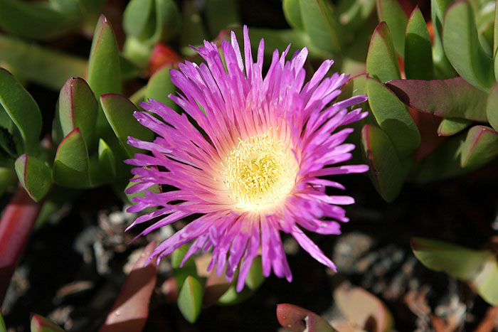 Местность вокруг постепенно из лесистой перешла в пустынную, стало значительно припекать. С удовольствием одели футболки и шорты, вспоминая снег каких то три дня тому. По дороге не выдержали и стали фотографировать цветущие кактусы, которые во множестве росли вдоль дороги.