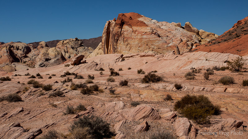Накануне заночевать получилось всего в 40 километрах от парка Valley of Fire так что приехали туда сравнительно рано и были первыми у туристического центра. Там рейнджер в униформе что то закапывал. Я неудачно пошутил, мол закапываете ночного нарушителя? Нет, говорит, прикапываю поилку для диких пчел. Он обкапывал небольшой жестяной тазик полный воды с сетчатой крышкой над которой роились маленькие пчелы. Слово за слово и рейнджер рассказал, что все в округе пересохло и так он "подпаивает" пчел. А после он рассказал нам про кактусы (там росло несколько видов вокруг центра), дал нам карту парка и посоветовал куда нам лучше сходить. Солнце поднималось все выше и начинало порядочно припекать. Жар от камней был не шуточный, спасал только сильный и сухой ветер.