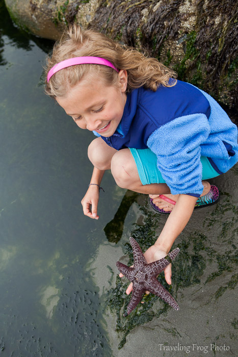 У Настёны исполнилась заветная мечта — найти на берегу морскую звезду. Всю дорогу, пока ехали от дома к побережью нас теребила: «А они точно там есть?». Оказалось — еще как есть!