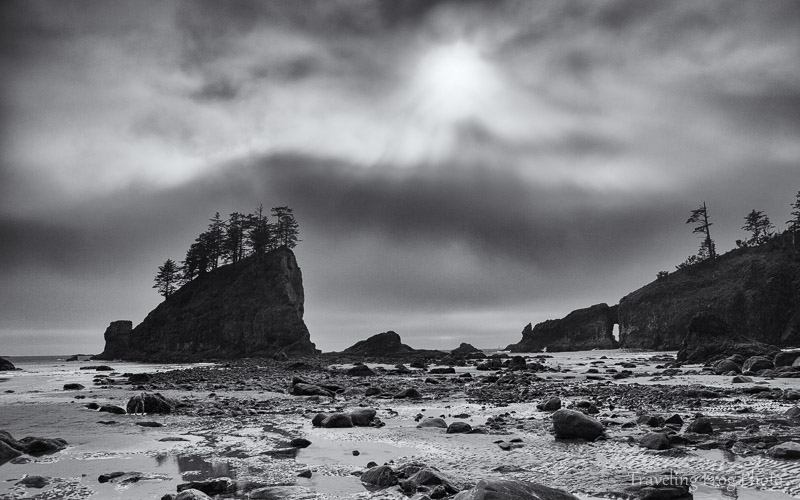 Дорога (101Hw) идет практически вдоль побережья и на ней устроено множество пляжей которым не мудрствуя лукаво просто присвоили порядковые номера. В самом La-Push пляж с номером один и далее номера идут по порядку с севера на юг. Один из более всего понравившихся пляжей числился за номером два — к нему надо топать по лесу от дороги километра полтора (не обременительно, лес очень красивый). Воду в океане трогали, но купаться даже не пробовали — холодина совсем не июльская.