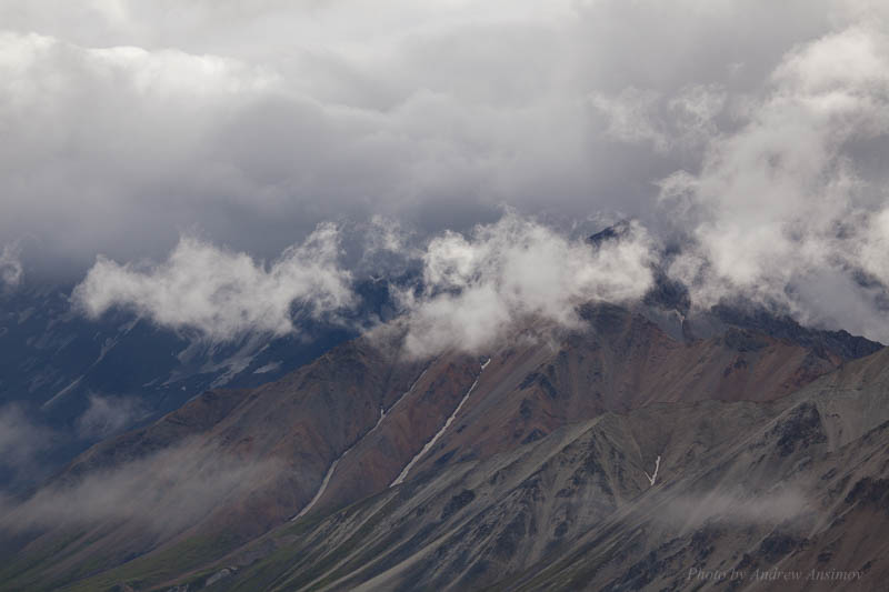 В парке Денали провели две ночи, преступно мало на такой красивый парк но... так сложилось. Парк огромный, своим транспортом пускают совсем не далеко, до первой речки. Дальше в парк можно попасть только экскурсионным автобусом, пять часов до самой дальней точки. Мы прокатились, конечно, хотя из-за туч гор было почти не видно. После полудня немного распогодилось но все же не так как хотелось бы.