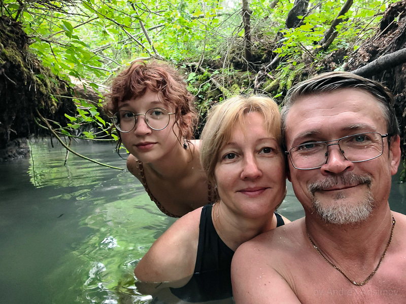 Утром (11 июля) поехали дальше и совсем скоро остановились на Liard Hot Springs – запланированные купания в горячих источниках. Впервые я там побывал в поездке 2016-го года и вот получилось привезти сюда жену и свою младшую, хотелось чтобы они тоже тут обязательно побывали – место потрясающее. Не обошлось без приключений - все серебряные украшения жены (купленные за несколько месяцев на Бали) и дочки в богатой серой воде источника тут же почернели. Это была катастрофа библейских масштабов.
