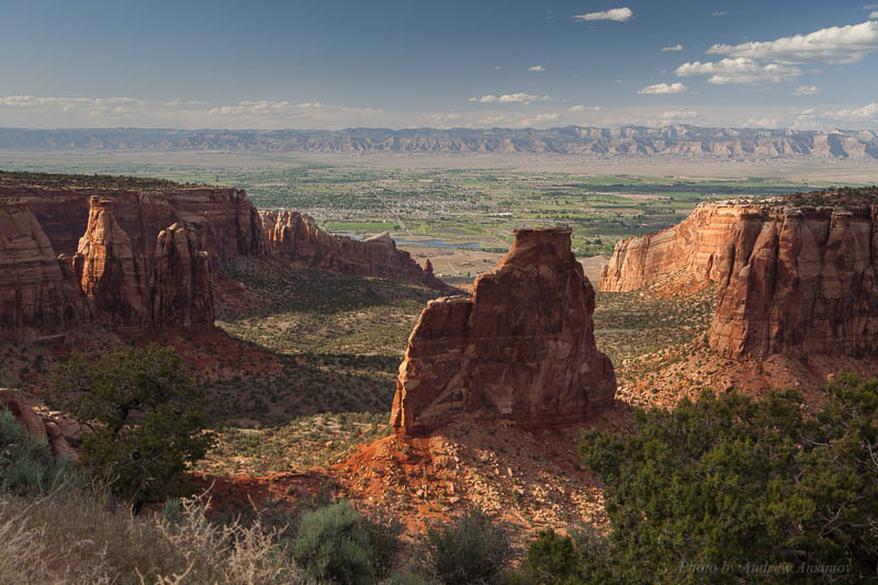 Живописный каоньон-уступ возле города Grand Junction на 70hw (одна из основных дорог пересекающих Скалистые Горы). На верх, на плато, можно заехать по петляющей дороге Rim Rock Drive и сверху открывается потрясающий вид на горы и долину.